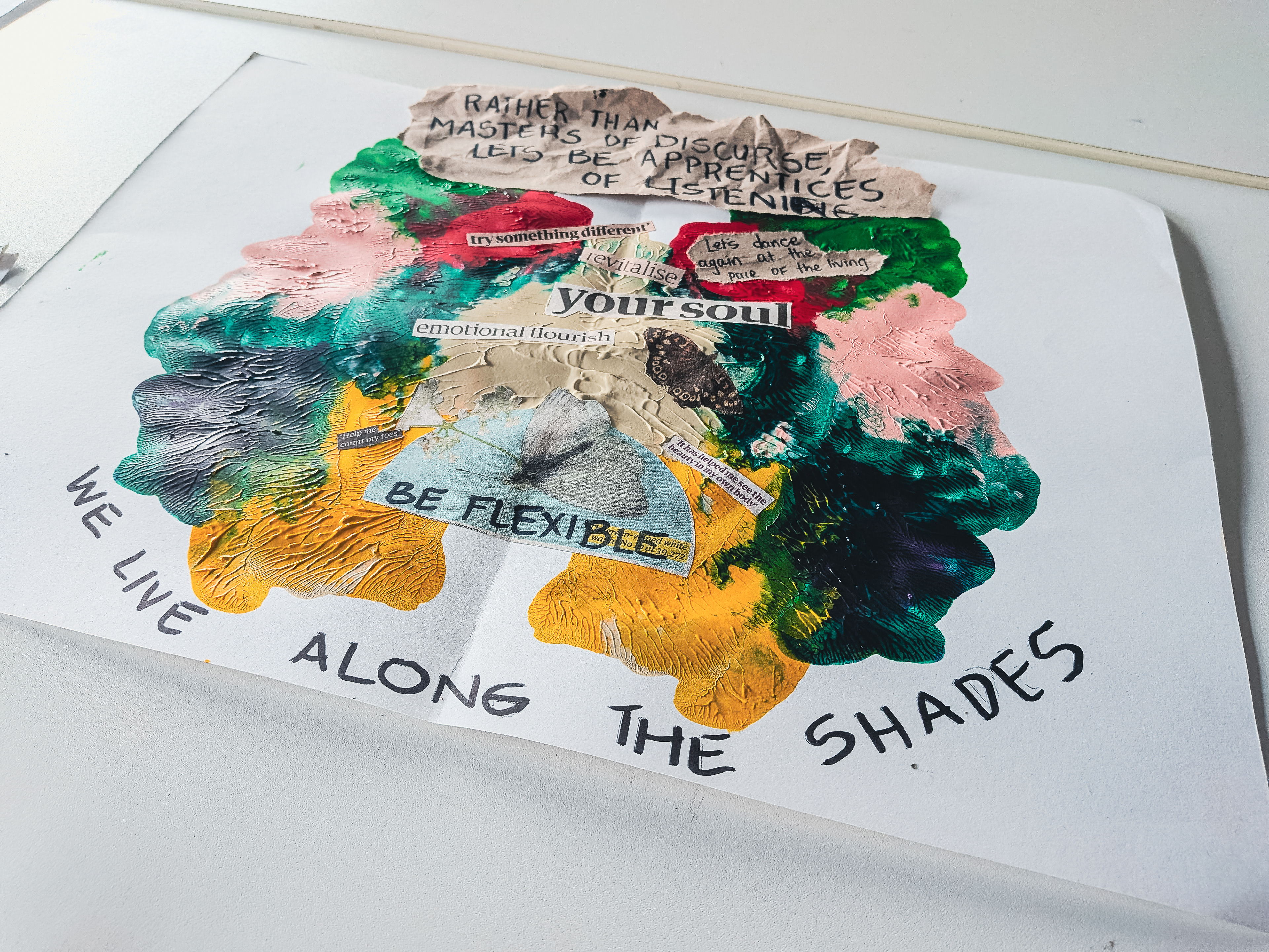 Our work was in created from a series of workshops that invited people to creatively work through the topics previously mentioned. Together we created a variety of artifacts through our conversations.