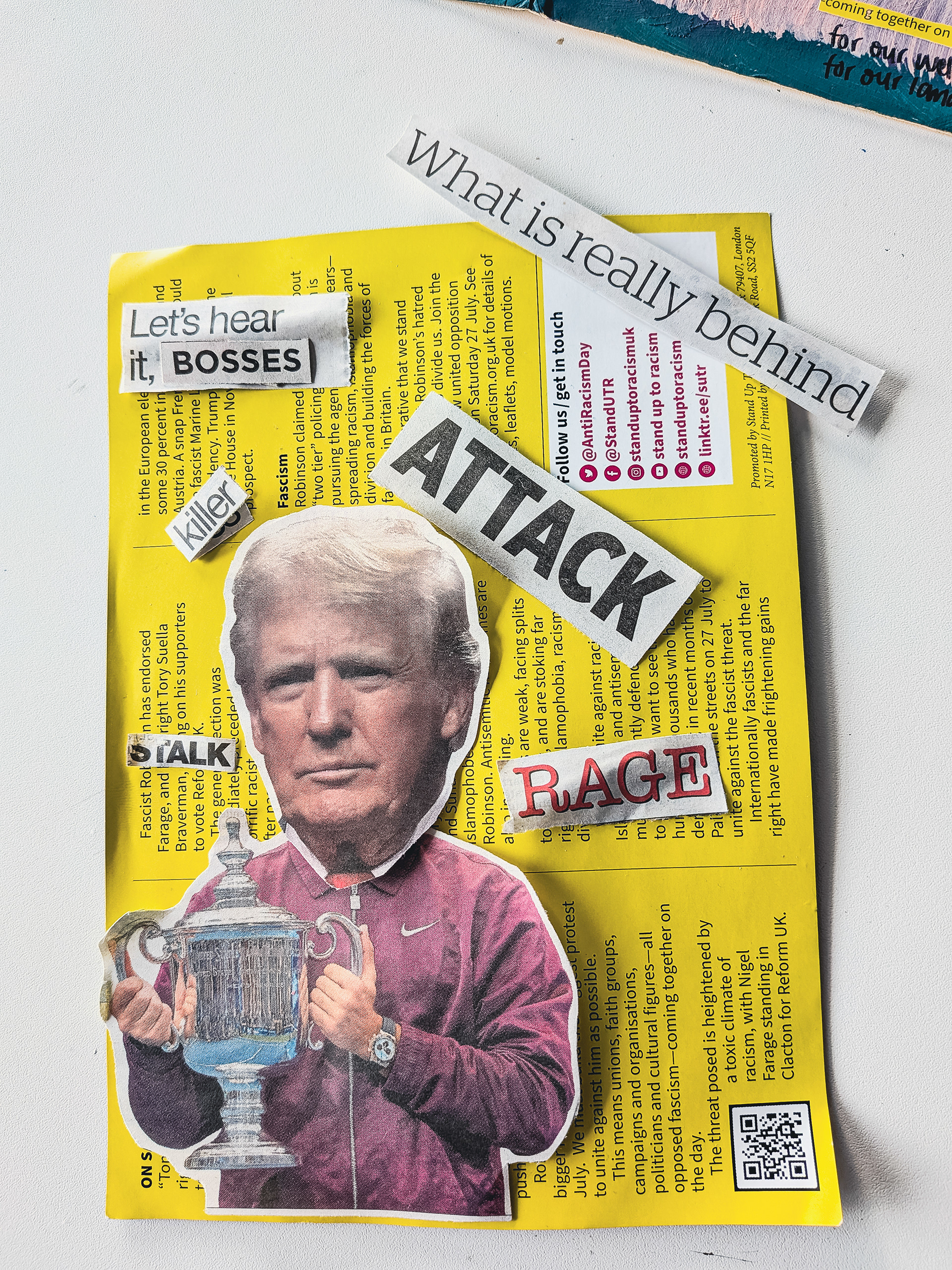 Our methodology is central to the ideas of Situationist International, Rob Hopkins and bell hooks. Through using design and collaboration alongside our attendees, is a visual counter-narrative to illustrate the ability to deconstruct imposed ‘mainstream’ media narratives and use them to build our own.